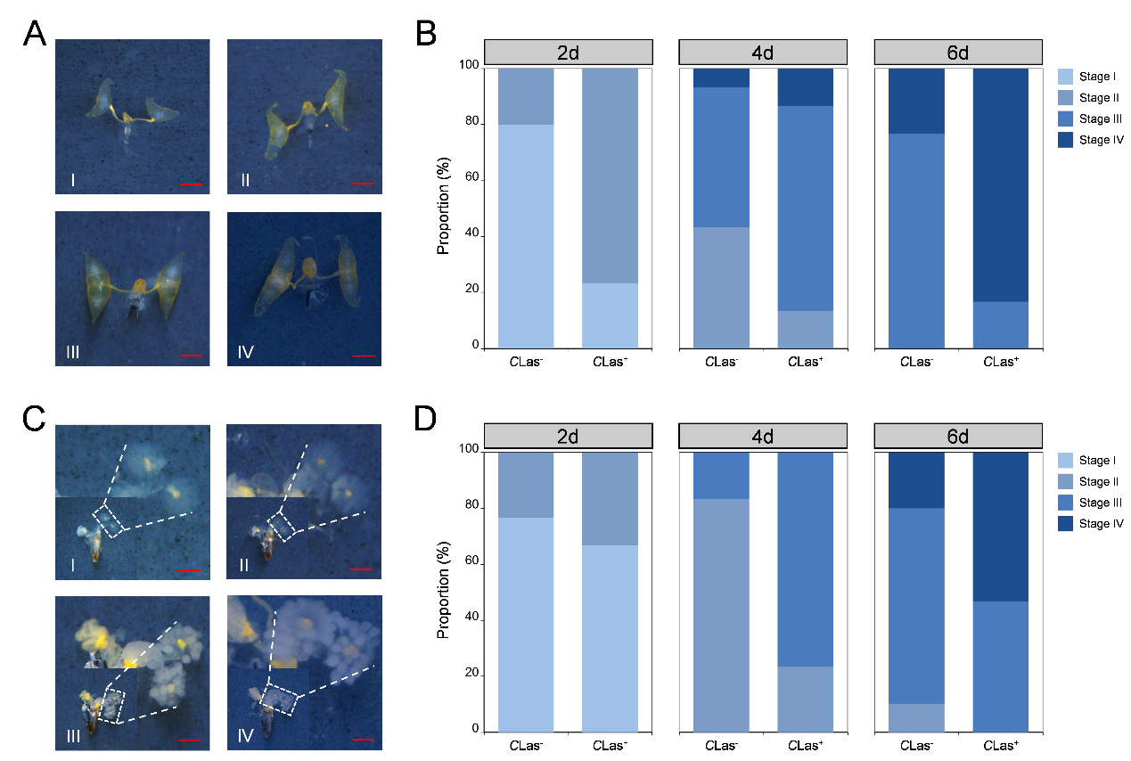 柑橘黄龙病俗称“柑橘癌症”,是全球柑橘产业的“头号杀手”,已造成巨大的经济损失。CLas与柑橘木虱在长期的共同进化过程中形成了互利关系,即木虱传播CLas的同时,CLas可提高木虱的繁殖力。但该互利关系背后的分子机制,尤其是CLas对木虱生殖系统发育和交配行为的调控机制尚不明确。明确这一机制可为制定黄龙病防控策略提供关键理论支撑。