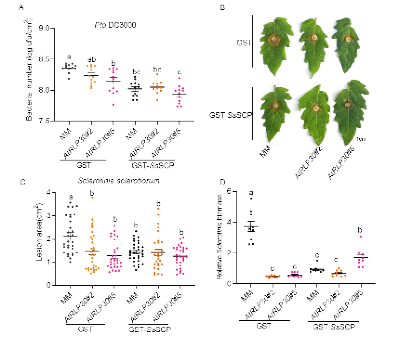 图2.外源施用SsSCP增强了番茄对细菌和真菌的抗性