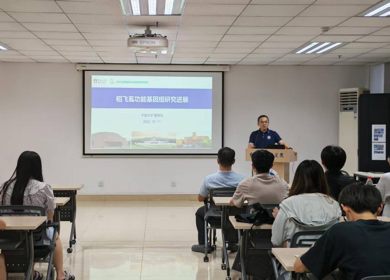2025年10月11日下午,宁波大学黄海剑研究员应邀来学院作以“稻飞虱功能基因组研究进展”为主题的学术报告会。报告由学院院长蒋红波教授主持,学院师生代表参加。