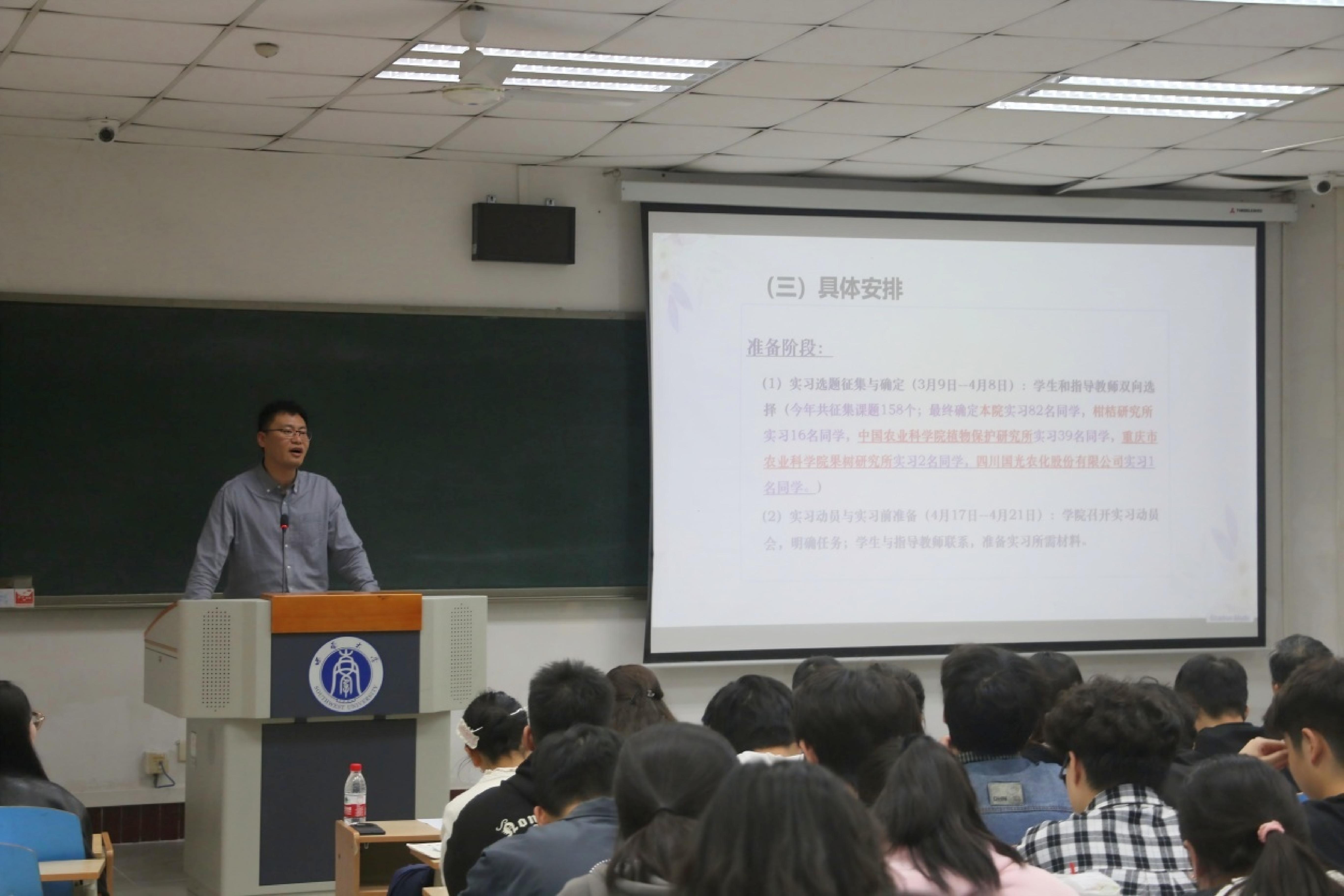 为切实提高植物保护专业人才培养质量,深化实践育人成效,4月21日下午,学院在32教312教室召开2023级植物保护专业生产实习动员大会。学院党委书记刘立广、党委副书记许莹竹、副院长杨宇衡、2023级辅导员张佳乐、班主任王静、罗志兵、张强、冯楷阳及全体2023级本科生参加会议。会议由学院教学工作办公室主任周苑主持。