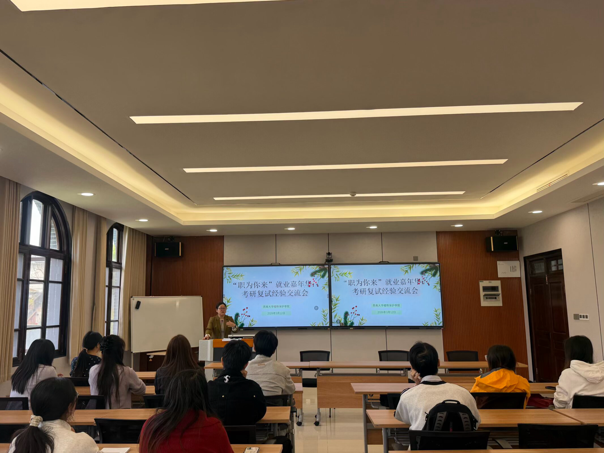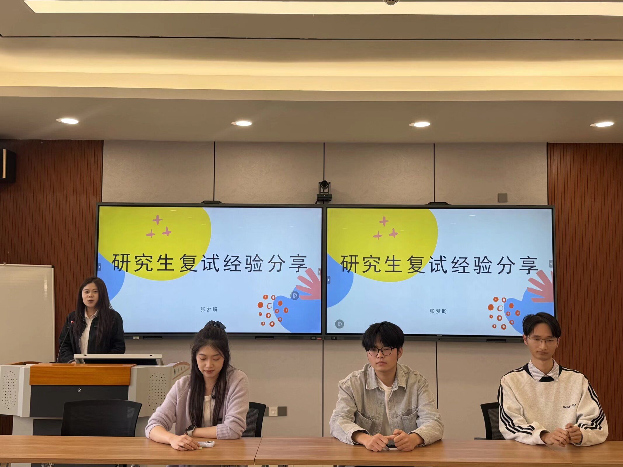 随后,四位主讲人结合自身复试经历与备考感悟,从复试全流程拆解、核心信息获取渠道、备考资料精准筛选、面试应答技巧、着装礼仪规范及心态调节方法等方面,进行了细致入微的分享。他们结合自身遇到的问题与应对经验,总结了诸多实用技巧,用真实案例为同学们搭建起清晰的复试备考框架,让在场学子受益匪浅。