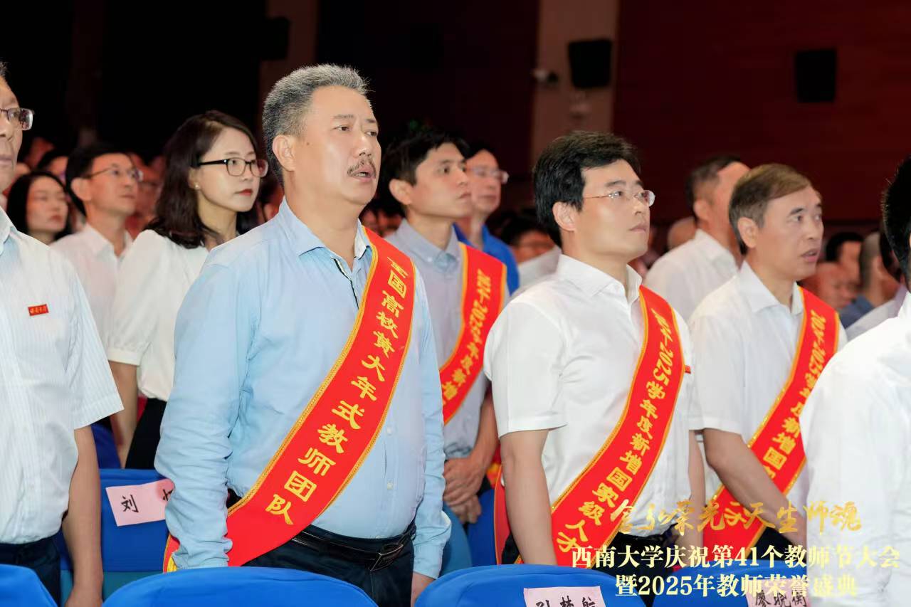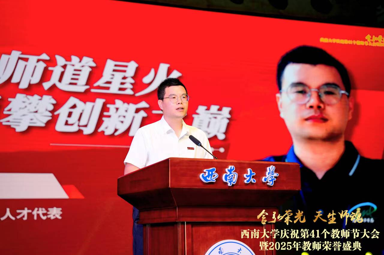 9月10日上午,团队成员代表参加了西南大学庆祝第41个教师节大会暨2025年教师荣誉盛典。其中,刘怀老师作为先进集体团队代表上台接受表彰,尚峰老师作为高层次青年后备人才代表上台发言。